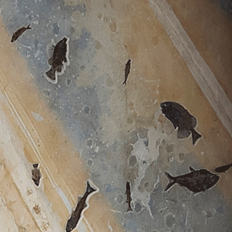Fossil Wall Feature – Showcases prehistoric elements within a contemporary design